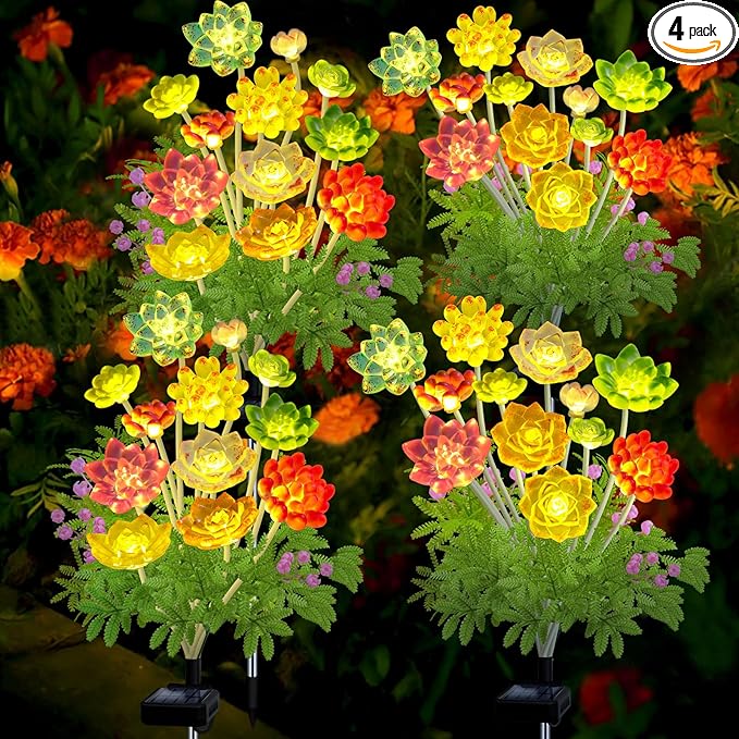 - Color : 4-Pack Succulent Solar Lights