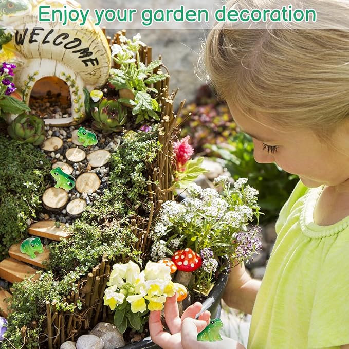 - WIDE APPLICATION - Miniature tiny frogs can enhance the attractive and interesting atmosphere of your room, dollhouse DIY, miniature garden landscape, fish tank, aquarium, plant, and cake, Suitable for decorating gardens, pools, patios fish tanks, gardens, rooms, cabinets, plant, etc