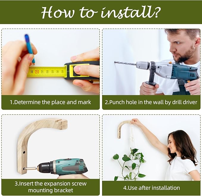 - 🪴【Easy to Install】Our plant hanger brackets come with screws that are right for most applications. You only have to drill two holes in the wall and attach the bracket with screws. Very easy and convenient. Using the screws and anchors included in the package, you can mount it on walls, decks, fences, doors, for indoor or outdoor activities in the living room, garage or balcony.
