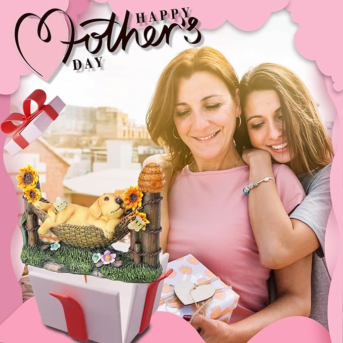 - 【Lovely Golden Retriever Figurine Light】- The adorable golden retriever lies lazily in a hammock with a hive-made lamp overhead and bees circling around it.The warm light creates a quiet, romantic and relaxing atmosphere.