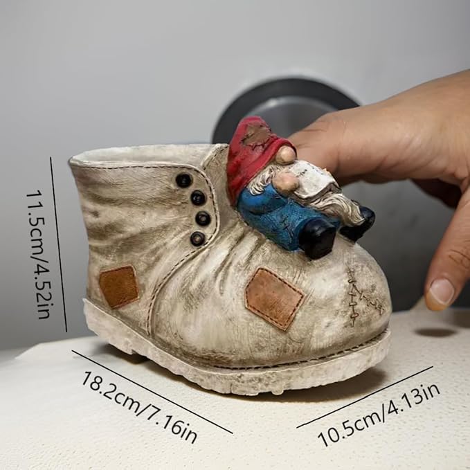 - Gnome flowerpot: The flowerpot is designed to look like a cute gnome lying on a shoe, cute and fun. A well-designed gnome flowerpot can be placed separately as a statue or add a touch of fun and charm to your plant display.