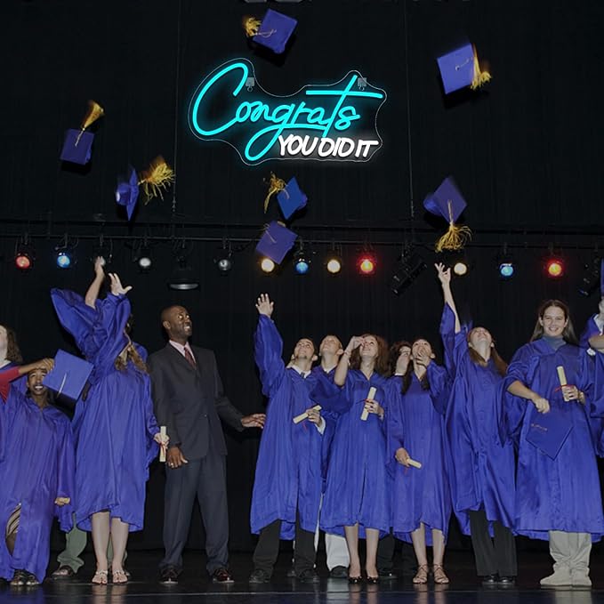 - Multi Applicable Scenarios: This neon sign perfectly integrates graduation elements, adding a graduation season atmosphere that is particularly suitable for graduation scenes, bringing joy and vitality to your graduation venue