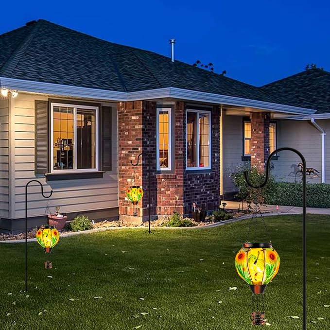 - Durable & Waterproof:Crafted from premium metal and adorned with dragonfly-patterned glass, our solar hot air balloon outdoor lantern features a rust-resistant finish for durability. The waterproof design stands up to various weather conditions, making the hot air balloon solar lantern a reliable choice for your patio, yard or garden decor.