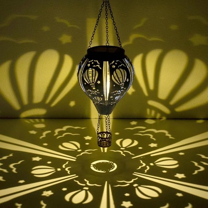 - Hot Air Balloon Solar Lantern:Elevate your outdoor decor with the hanging solar lantern, featuring a whimsical hot air balloon design. This hot air balloon solar lantern not only adds a pop of color but also provides a warm, inviting glow.