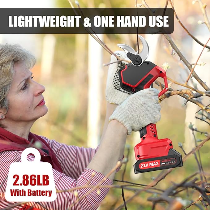 - 2PACK 2000MAH BATTERIES: Equipped with two 21V 2000mAh rechargeable batteries, this gardening pruning shear provides users with long-lasting power support, allowing it to work continuously for long periods of time without the need for frequent recharging, thus improving work efficiency and convenience.