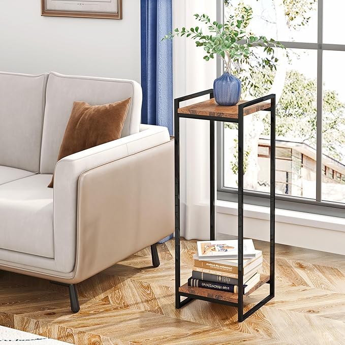 34" Tall Plant Stand Indoor, 2-Tier Modern Plant Shelf Corner Flower Pot Holder Organizer for Living Room Balcony Garden, Rustic Brown