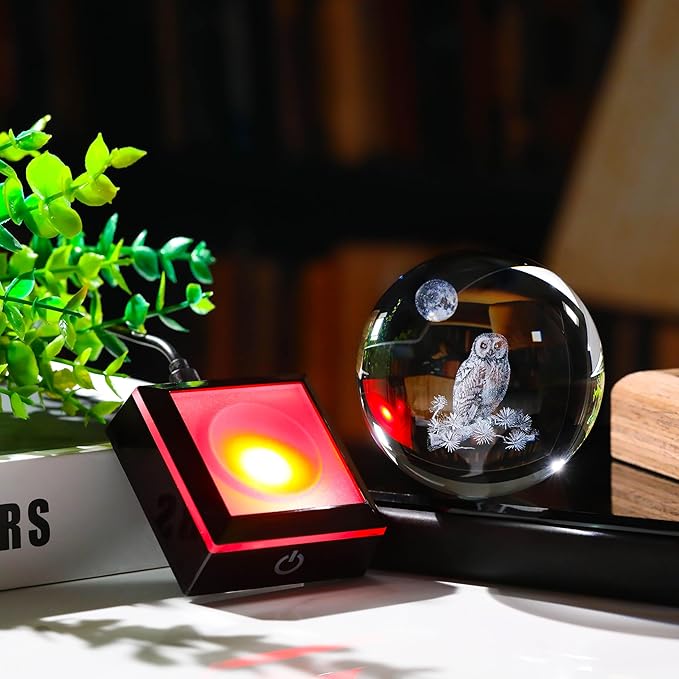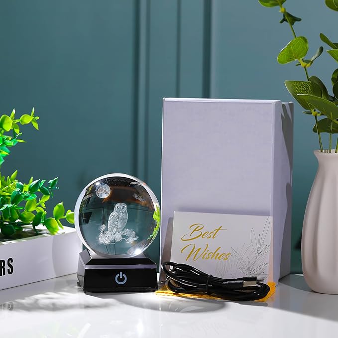 - Crystal Ball Owl Gifts - Crystal Glass Owl Figurine Decor size: 3.14". Made of K9 Crystal, Interior images are carved by Advanced 3d Laser Engraving Technology.