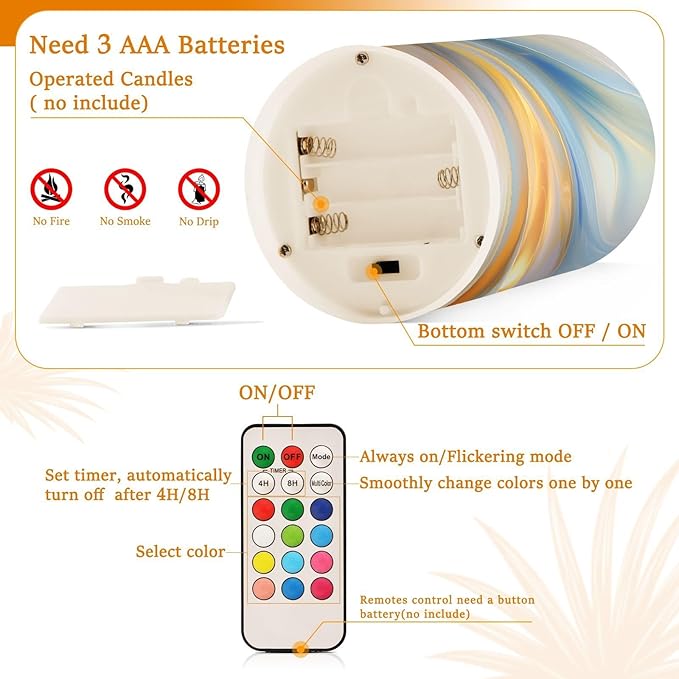 - Convenient Remote Functions: Includes an 18-key remote controller with a timer. You can control these candles remotely when they are placed somewhere difficult to touch. Set 4H/8H timers will save you trouble turning them on/off, they will come back on automatically at the same time every day. Also, you can adjust the light color as you want