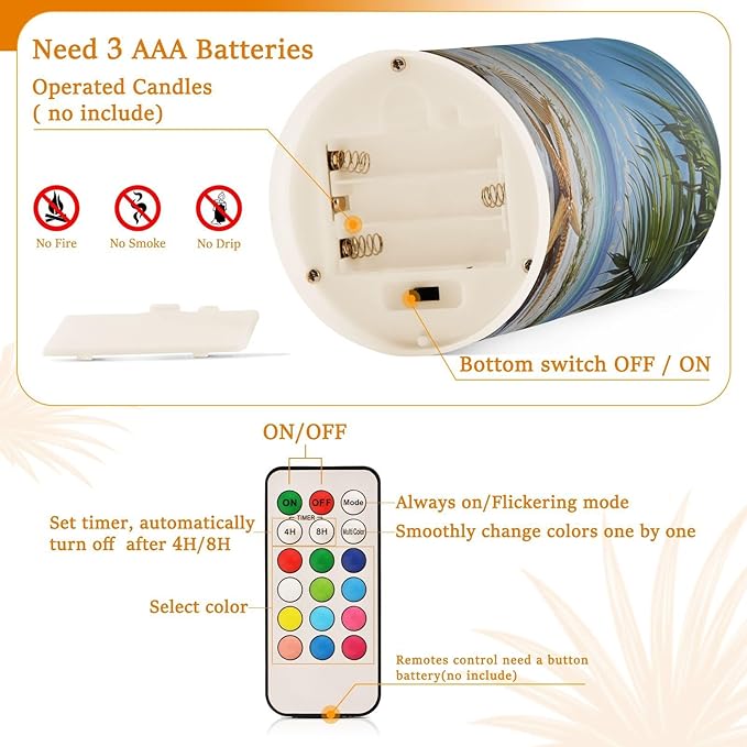 - Convenient Remote Functions: Includes an 18-key remote controller with a timer. You can control these candles remotely when they are placed somewhere difficult to touch. Set 4H/8H timers will save you trouble turning them on/off, they will come back on automatically at the same time every day. Also, you can adjust the light color as you want