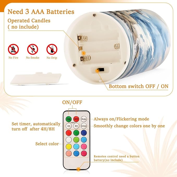 - Convenient Remote Functions: Includes an 18-key remote controller with a timer. You can control these candles remotely when they are placed somewhere difficult to touch. Set 4H/8H timers will save you trouble turning them on/off, they will come back on automatically at the same time every day. Also, you can adjust the light color as you want
