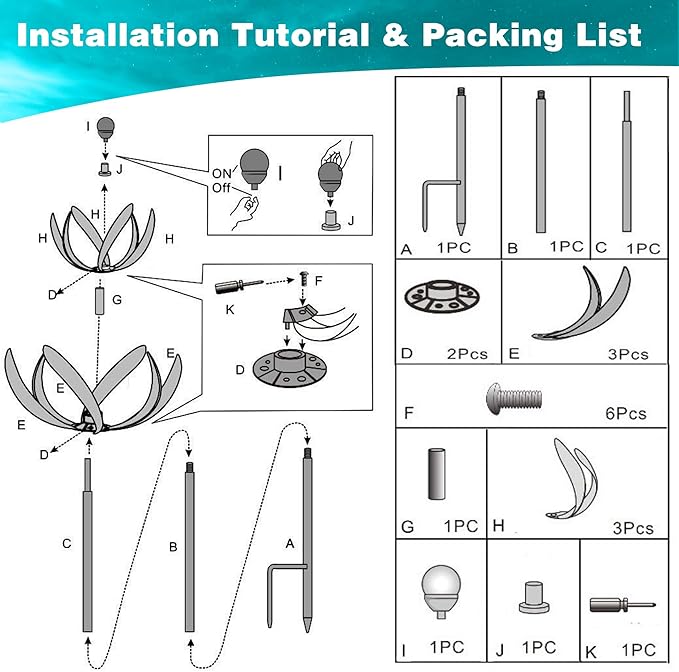 - 【 Easy to Install 】Wind Spinner Outdoor Metal is very easy to install, just twist all the accessories to install. The metal pole, the angle of the petals can be adjusted, you can also adjust the length of the pole and the degree of bloom of the flowers.