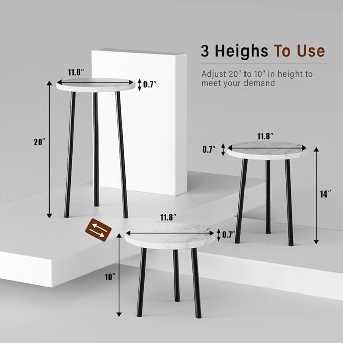 Plant Stand Indoor Tall: Corner Wood Plant Stand 2 Pack Mid Century Modern Decor - Small Round Plant Table for Indoor Plants - Outdoor Plant Holder for Patio Living Room Bathroom Office (White Marble)