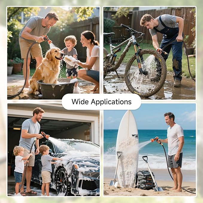 - 9 Adjustable Spray Patterns: Garden Hose nozzle supports 9 patterns to fulfill your different watering purposes. Can be used for car washing, watering, cleaning, pet bathing, etc.
