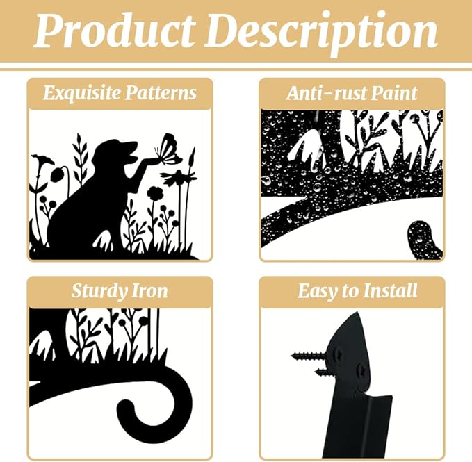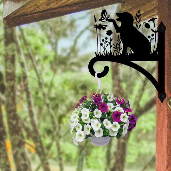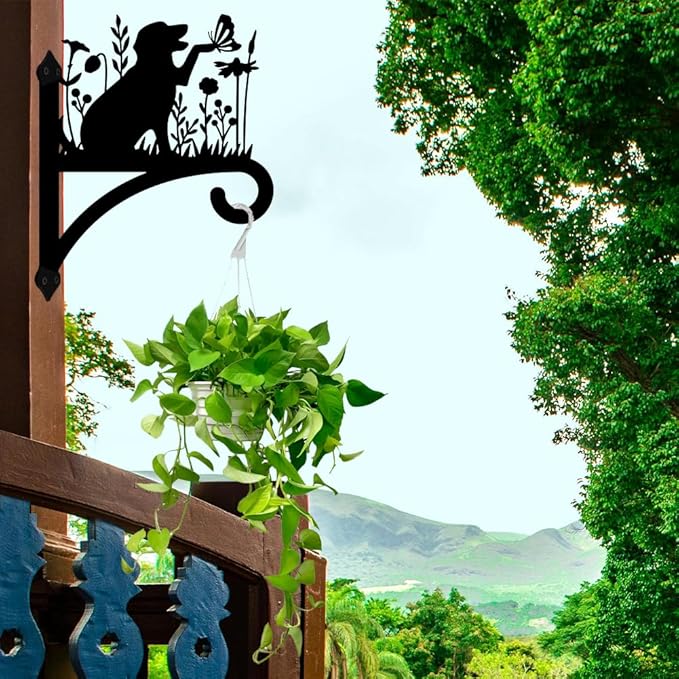 Peacoblue Iron Plant Hangers Holder for Outdoor Indoor Hanging Plants Fern Pots, Lantern, Bird Feeder, Wind Chimes, 12โx14โ Dog Weather Resistant Metal Wall Brackets Hooks for Porch, Garden, Home(Dog)