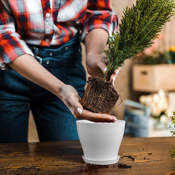 - 【Drainage Holes and Trays】Each plant pot features well-designed drainage holes at the bottom to ensure proper water flow. Additionally, saucers catch excess water, keeping your growing area clean and tidy while also ensuring that your plants remain hydrated without becoming waterlogged.