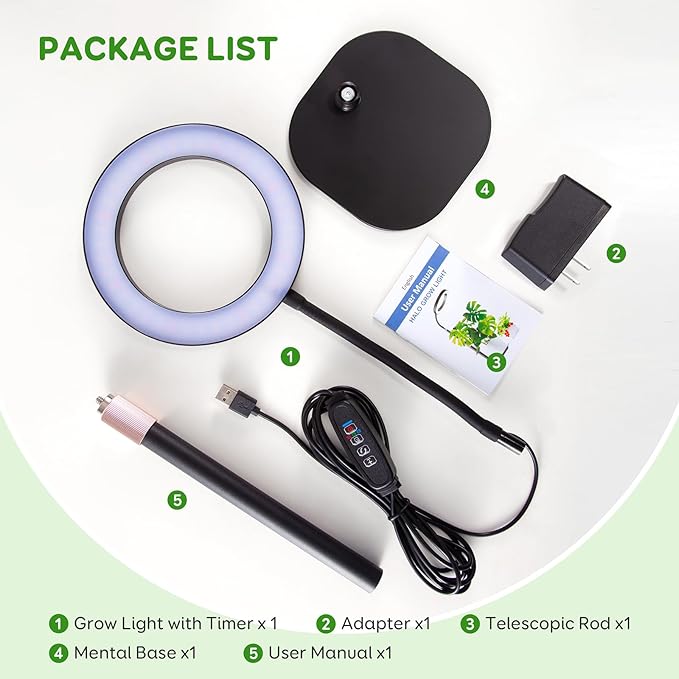 - 【Perfect for First-Time Indoor Gardeners】:Designed with simplicity in mind, this grow light is ideal for beginners. Its user-friendly features, including adjustable height, flexible gooseneck, and auto timing, make it easy for first-time indoor gardeners to achieve successful plant growth.