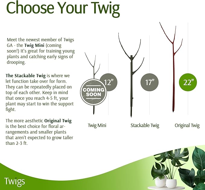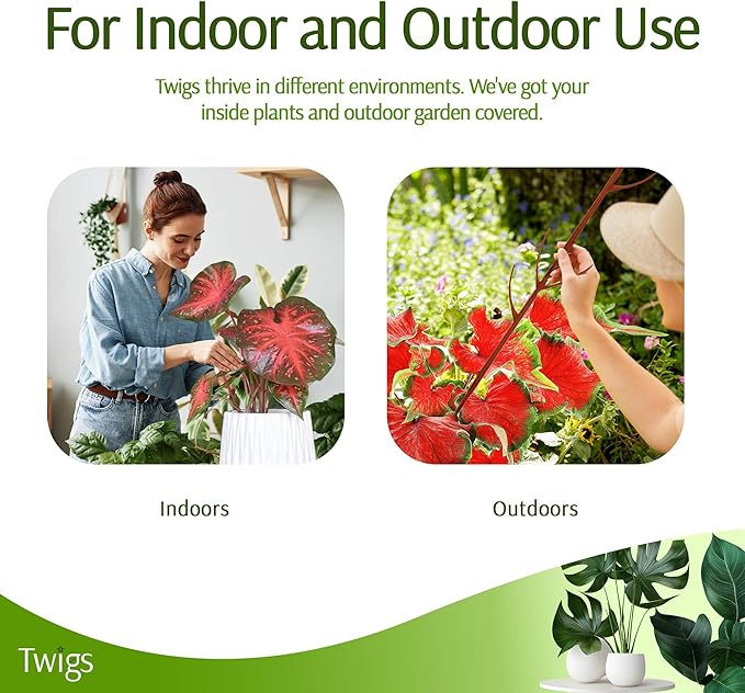 - CONVENIENT PLANT SUPPORT STAKES: Twigs GA Original Twig Plant Stakes provide structure to both indoor and outdoor plants. These plant supports for potted plants deliver convenient support without twist ties or clips, ensuring your plants stay upright and healthy.