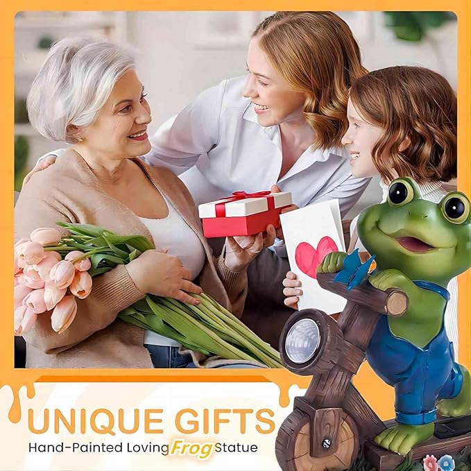 - ใ๐๐๐๐ ๐๐๐๐๐๐๐ใBetter gift, better life. This solar garden frog decor brings a big and wonderful surprise to anyone who loves unique and charming outdoor garden ornament. Therefore, it is a best gift choice for birthdays, Thanksgiving Day, Easter, Mother's Day, Father's Day, celebrations , or any anniversary!