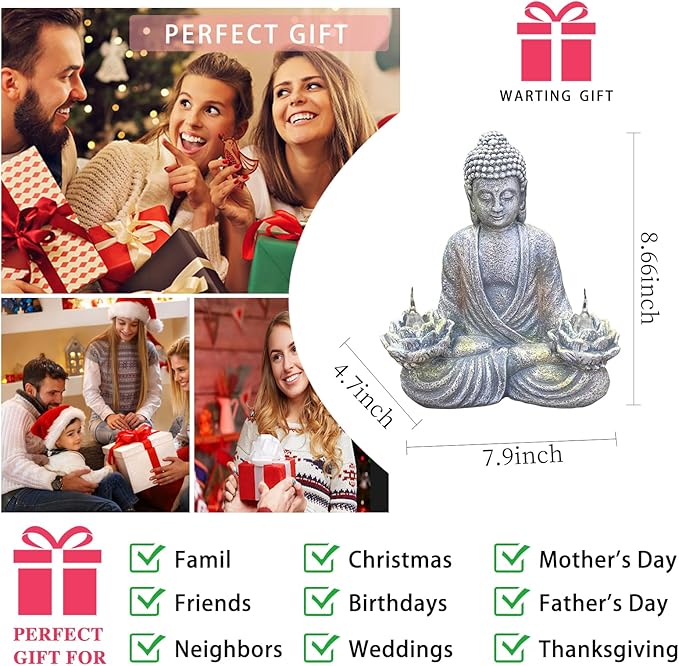 Buddha Statue for Home and Outdoor Decor Solar Powered Flickering LED,Garden Light Zen Meditation Spiritual Room Decor- Buddha Decor Outdoor-Ideas Gifts for Women, Mom