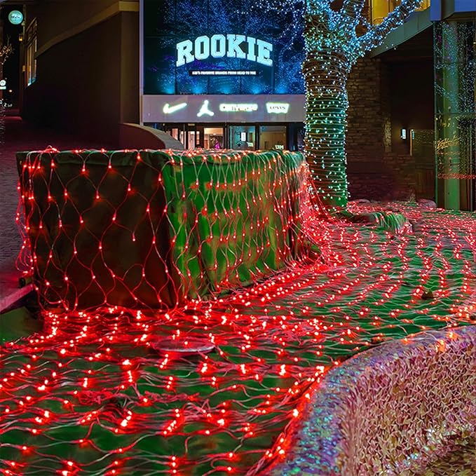 - Christmas Decorative Lights: Red net mesh lights, come with super bright 360 LEDs and UL Certified adapter. Low voltage plug, safety voltage for human body. Mesh panel size 12ft x 5ft with 16.5ft lead cable