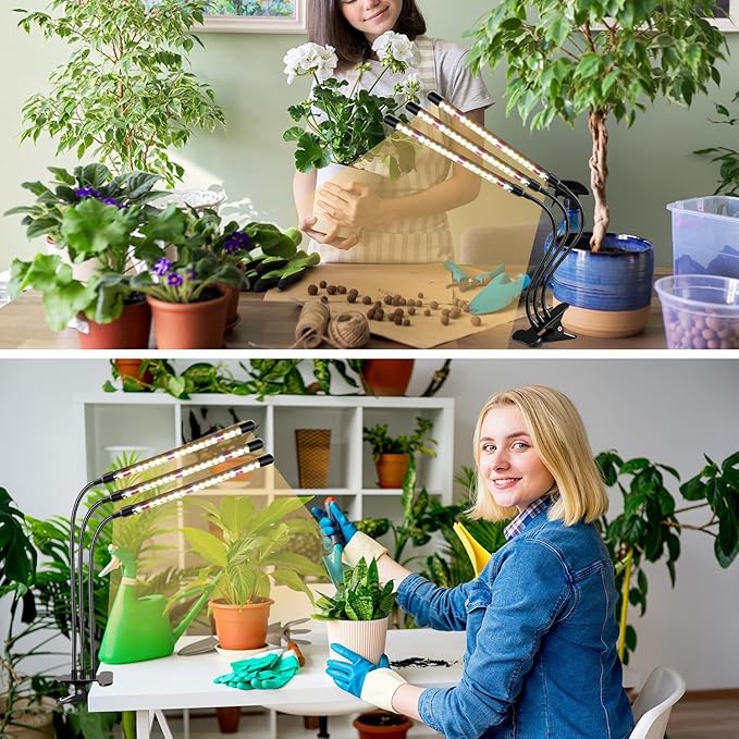 - 【Secure Non-Slip Clamp & 360° Adjustable Gooseneck】 - Sturdy clamp grips shelves/tables up to 3" thick without slipping. Flexible 360° gooseneck arms let you direct light precisely to tall plants, trailing vines, or multi-tier gardens. Space-saving vertical/horizontal mounting.