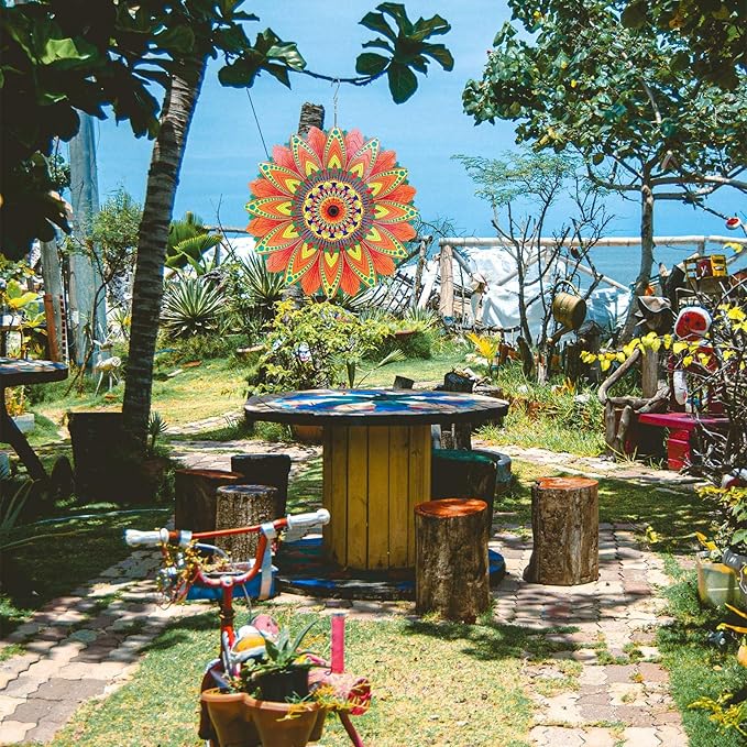 - 【Kinetic Art 3D Visual Sense】The colorful sunflower wind spinner can be multi-layer flip, the unique flow of light surface design, in the breeze under the 360 deg rotation, especially in the sunshine, this bright and charming landscape, is so natural elegance and brilliant colors