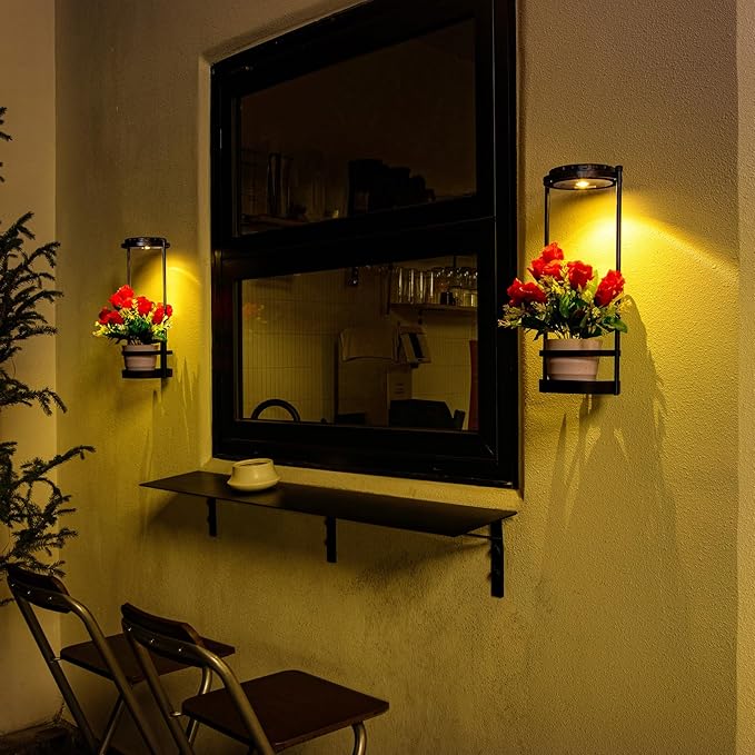 Solar Yard Wall Light with Plant Stands, Wireless Outdoor Solar Wall Lamp with 2 Modes & IP45 Waterproof Dusk to Dawn LED Outdoor Solar Lights for Garden Patio Yard Decoration (2Pack)