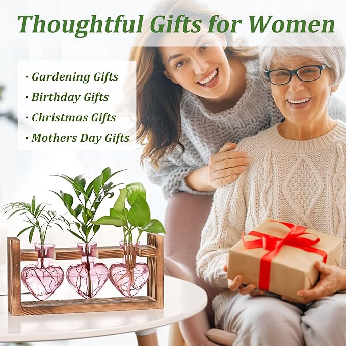 - GARDENING GIFTS FOR WOMEN: Are you looking for enchanting and thoughtful gardening gifts for the plant lovers? Look no further, our heart-shaped propagation stations are not only the perfect token of affection but also offer a unique way to nurture plant cuttings.