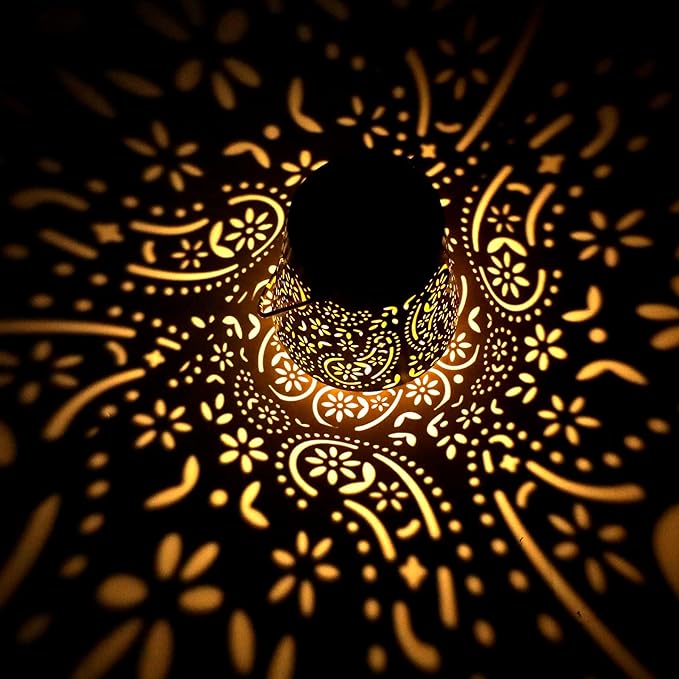 - Decorative &Wide Application: 4 packs small patio hanging lanterns have a colorful outlook--red, blue, green, and yellow. There is a warm light with beautiful flower patterns and a classic hollow-out design, these table lanterns will create the romantic ambiance you want.
