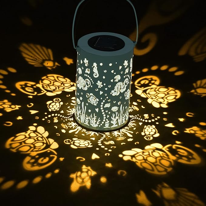 - 【Charming Sea Turtle Design】- Our blue solar lantern features a beautiful hollow design with intricate sea turtle patterns. The soft blue hue and delicate cutouts create a serene and captivating glow as night falls, transforming your garden, patio, or balcony into a tranquil haven. This lantern is not only an eye-catching decor piece but also a heartfelt gift to show appreciation or brighten someone's day.