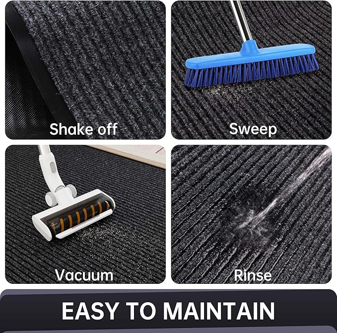 - EASY TO CLEAN: Simply shake, sweep, or vacuum the entrance floor mats to remove dust and debris. For a deeper clean, rinse with a hose and air dry—front door mats will quickly returns to its original condition.