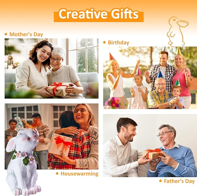- 【Creative Gift】The rabbit statue lamp is a great gift that speaks volumes to show your appreciation and love whether it's for Mother's Day, Birthday, Easter or Christmas. This heartfelt gift is sure to surprise your mom or friends. Depending on your needs, bunny statues can be placed on terraces, gardens, courtyards, and balconies