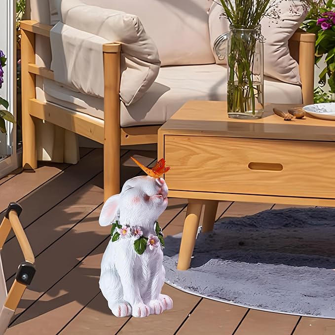 - 【Charming Garden Decor】The adorable garden bunny statue is the perfect addition to any garden. With intricate fur details and an attractive butterfly resting on the rabbit's nose, especially in the garden and courtyard, you can better feel its vitality. This yard bunny decor doubles as a high-quality garden lamp, perfect gift for moms and women