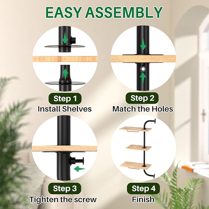 - EASY TO ASSEMBLE: The wall-mounted plant stands are easy to install and have all the necessary hardware! Just install shelves, match the hole and tighten the screw then finish. The floating plant shelves design allows you to keep your indoor plant shelves clean and well-maintained