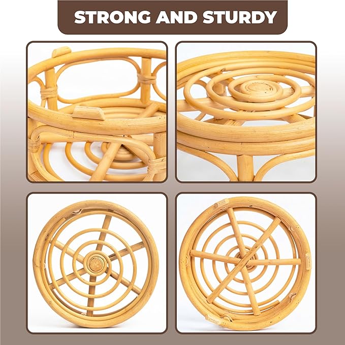 - ☘️【Handcraft】: Rattan plant stand is made of high quality natural rattan - can allow for a weight up 60lbs (Small) to 120 lbs (Large). Every product is natural and made by hand, so there is a slight difference in size and color.