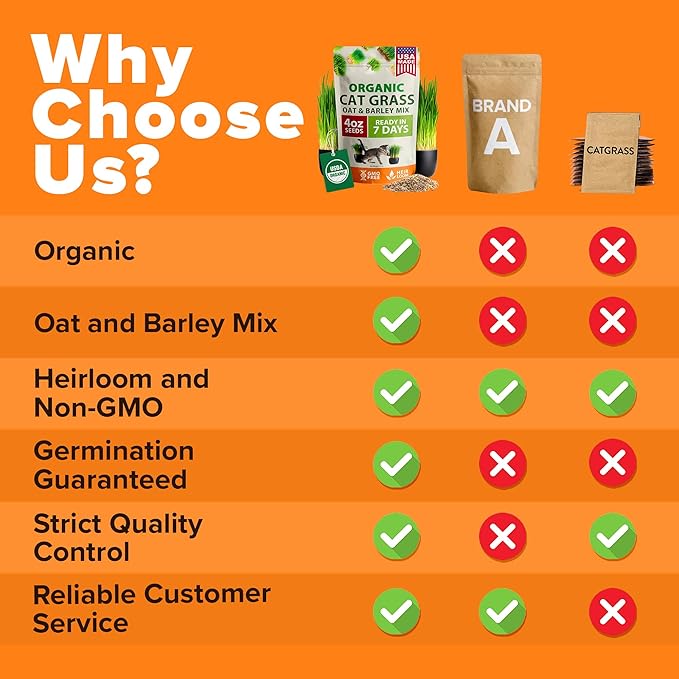 - YEAR-ROUND INDOOR GROWTH – FAST GERMINATION, EASY CARE. Grow a constant supply of cat grass indoors with minimal effort. Our mix offers fast sprouting, lush compact growth, and peak freshness with simple care: mist watering, good lighting, aerated soil, and light trimming. The 4 oz supply ensures a steady cycle of nutrient-packed greens all year long.