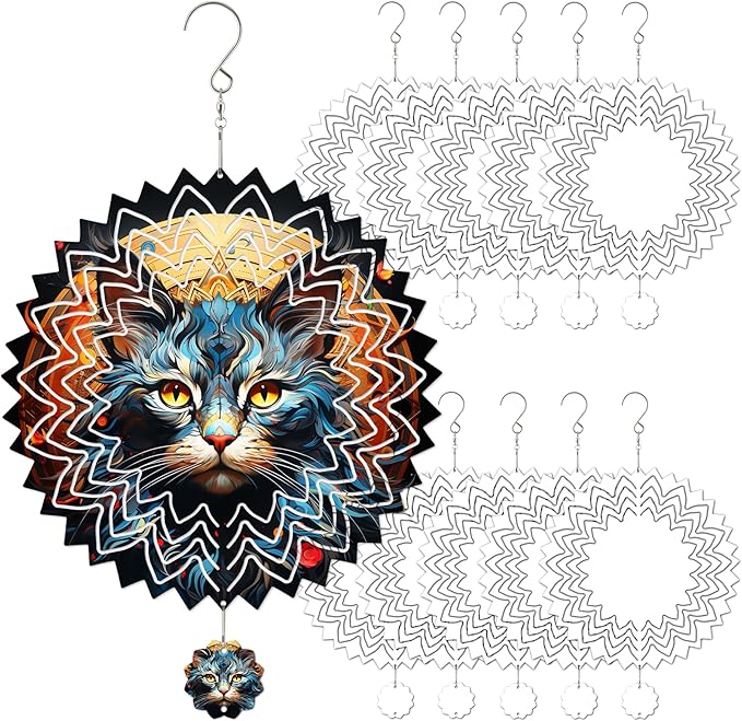 Sublimation Wind Spinner Blanks, 10 Pack10 Inch 3D Aluminum Metal Hanging Wind Spinner Bulk for Garden Yard Outdoor, Window Porch Decoration for Heat Press Transfer DIY