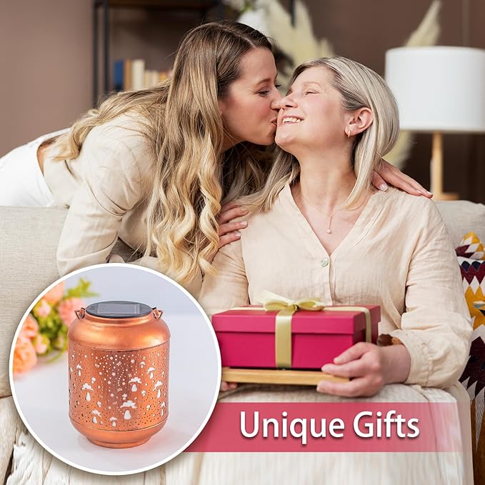 Mushroom Solar Lanterns Outdoor Waterproof Hanging Solar Lights Mushroom Gifts for Women Men Mom Metal Decorative LED Outdoor Lanterns for Patio,Lawn, Landscape, Garden Decor, Yard Decoration