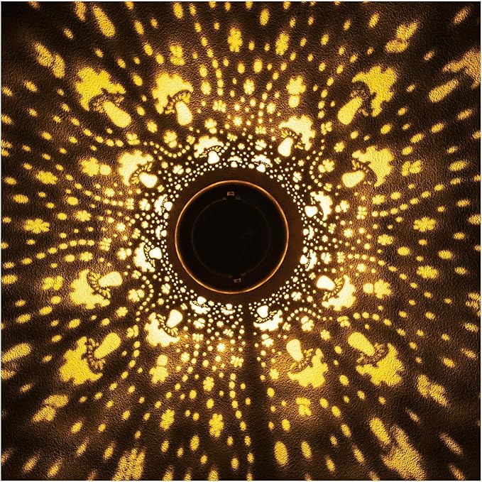 - 【Beautiful Garden Decoration】- Mushroom Outdoor Solar Lanterns can project unique and beautiful light patterns in dimly lit environments, creating a gorgeous and warm atmosphere, adding life and fun to your garden and attracting your family or friends. The very unique hollow design and antique bronze color give it an elegant and artistic look, perfect for decorating backyards, gardens, corners, outside, pathway, tabletop, courtyards, sidewalks and many other scenes.