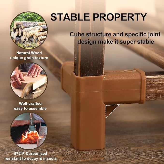 - CARBONIZED NATURAL WOOD : The natural wood is carbonized at 300°C, making this plant stand more durable and resistant to corrosion, enhancing its waterproof performance and extending its lifespan (though outdoor lifespan may be slightly shorter). Included gloves prevent your hands from getting dirty during assembly.