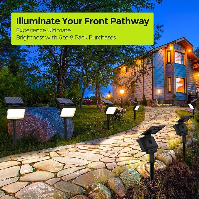 - Perfect for Accent Lighting: Due to their stronger light focusing function, our spotlights are perfect for illuminating decorative flags, large trees, sculptures, and exterior walls. They also provide safety lighting for your garden, front yard, backyard, driveway, and swimming pool. During Holiday, our solar Halloween lights create an exaggerated atmosphere that complements your decorations, adding a touch of mystery to your yard or porch. Similarly, during Christmas, placing solar landscape lights in your yard or garden, along with Christmas trees and decorations, fills the space with festive atmosphere, bringing joy to your family and neighbors