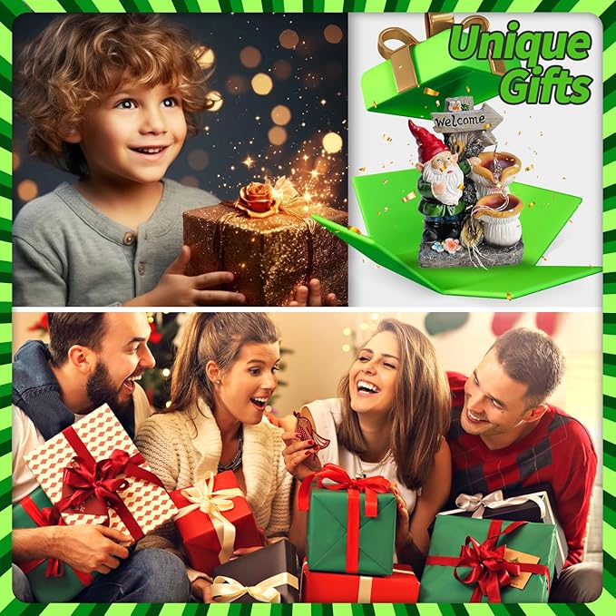 mopha Garden Gnomes Statues Outdoor Decor with Flowing Water Solar Lights Resin Figurines Outside Decoration for Patio Yard Lawn Porch Ornaments Clearance Gardening Gift