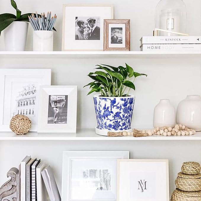 - [Ceramic Plant Pot]-The surface of the blue and white planter features exquisite floral, birds and arrangement patterns and irregular crackle effects, adding delicacy and uniqueness. The stunning vintage design complements any home or office decor and provides an attractive visual display for your plants, making them stand out