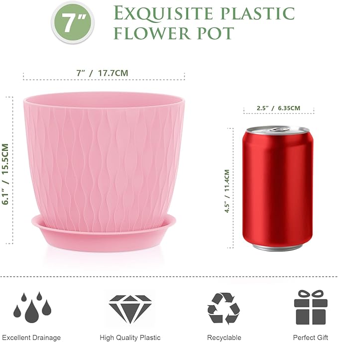 - 【Unique Design】The exquisite ripple texture on the surface adds visual layers and texture, bringing an artistic touch to your plants. Use WSMKSZ plastic planters to decorate your balconies, windowsills, porch, shelves, bedrooms, living rooms, kitchens, patios, offices and more.