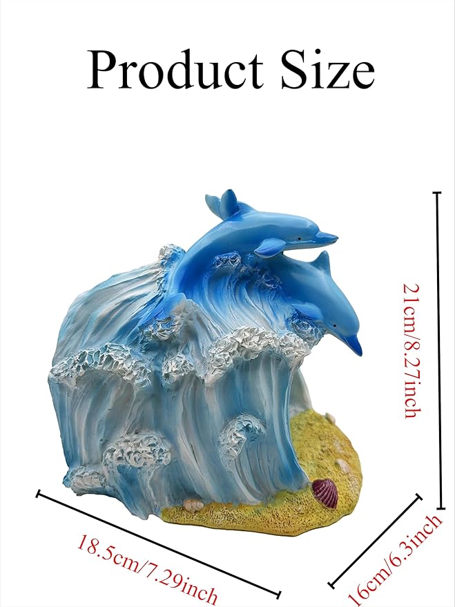 - Hand-painted in vibrant colors and coated with a waterproof and UV-resistant finish, ensuring the dolphin statues stay looking new year after year, even in harsh weather conditions.