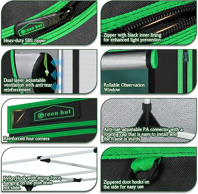 - LIGHT PROOF --- The large heavy duty Zippers & 1.5" ribbon protect the tent from light leaking and ensure durability and long-lasting use. Let you control the climate and lighting so you can grow any plant in any place safely and easily