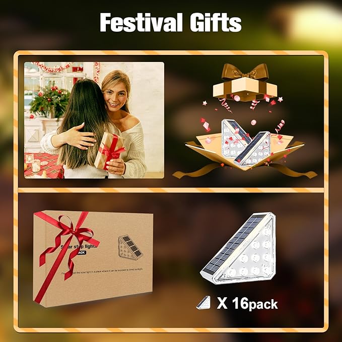 VOLISUN Solar Step Lights for Outside 16 Pack, Solar Stair Lights Outdoor Waterproof IP67, LED Outdoor Step Lights, Outdoor Stair Lights Decor for Deck, Front Step, Front Porch and Patio (Warm White)