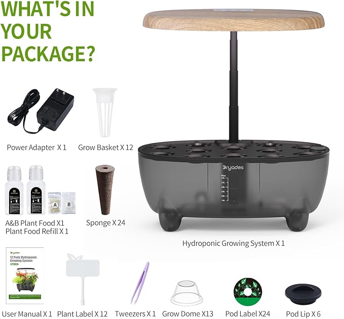 - 12-Pod Indoor Garden Kit: The Dryades Z237 includes 12 pods, making it perfect for growing a variety of herbs, vegetables, or flowers. Its compact design fits seamlessly into any indoor space, offering a modern solution for indoor gardening.