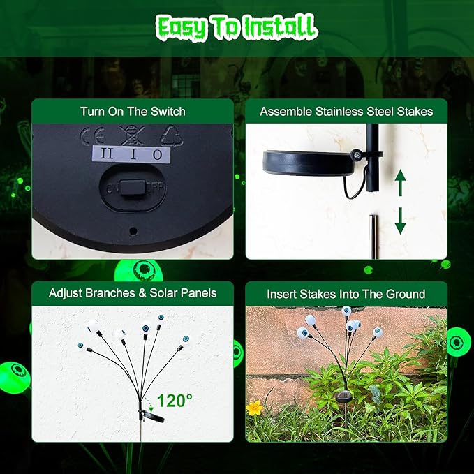 - 【Easy Installation and Use】Being solar-powered, these lights are easy to install without the hassle of wiring or electricity. They automatically charge during the day and turn on at night, providing hassle-free operation for your Halloween display.