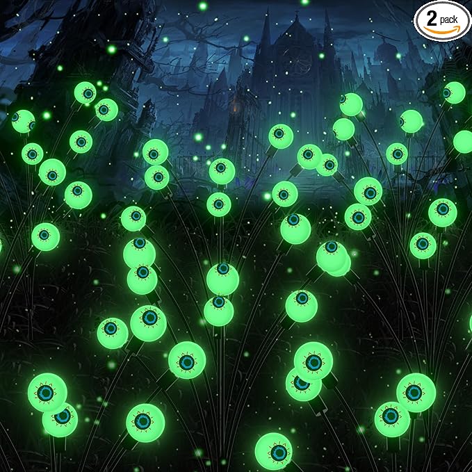 - 【Perfect Outdoor Halloween Decorations】 The Halloween must haves scary eyeballs Halloween solar lights are perfect for decorating Halloween parties, gardens, yards, lawns, front porches, and flower pots. Present it as a Halloween gift to your family, neighbors, and friends and enjoy these fun Halloween decorations together!